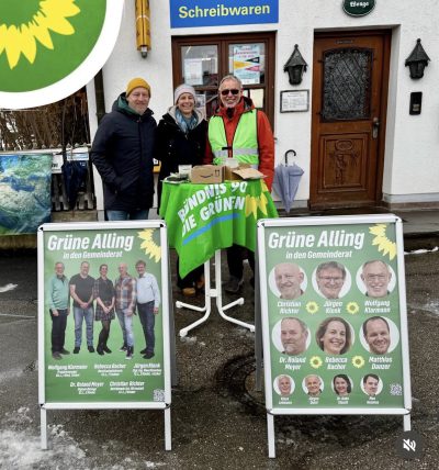 Die Grüne Liste Alling trat das erste Mal bei der Gemeinderatswahl an und hatte auf Anhieb zwei Sitze im Gemeinderat Alling erobert! Wir danken unseren Wählern sehr herzlich und bedanken uns für das uns entgegen gebrachte Vertrauen.