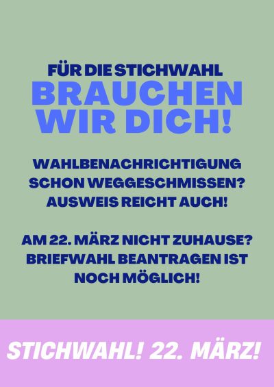 Am Samstag und zuletzt am Montag hatten wir noch einmal, so kurz vor der Wahl, unseren Infotisch vor Schreibwaren Moni stehen. Wir hatten an beiden Tagen gute Gespräche, wenn auch bereits viele von euch ihren Stimmzettel abgegeben hatten.